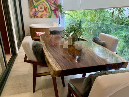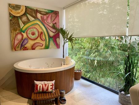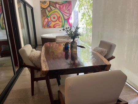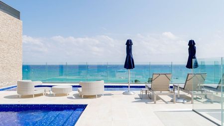 Terraza privada con jacuzzi perfecto para descansar y relajarse. A poca distancia de la playa. Excelente ubicación, a pocos pasos de la famosa 5ta avenida. Acceso al techo con vista al mar y piscina en áreas comunes.