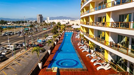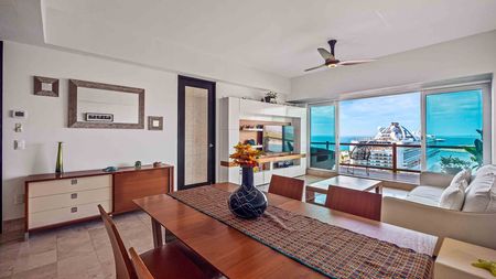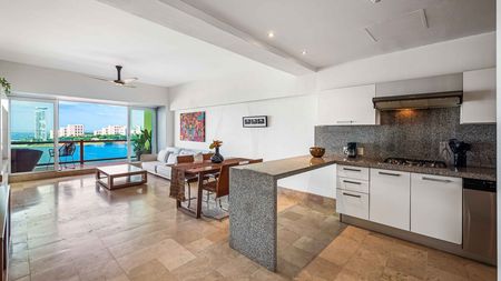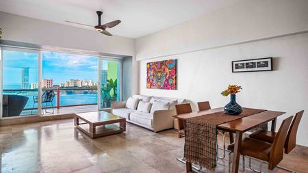 ¡Confortable y acogedor condominio en una ubicación privilegiada! Descubra este encantador condominio de 2 recámaras y 2 baños en el corazón de la Zona Hotelera Norte, idealmente ubicado frente a la hermosa terminal de cruceros del puerto. Con Galerías Vallarta, el principal centro comercial de la ciudad, a pocos pasos de distancia, y un rápido acceso a Marina Vallarta y el aeropuerto, esta ubicación es insuperable. Esta casa amueblada cuenta con un diseño mexicano contemporáneo con toques modernos. Abundante luz natural y excelente ventilación mejoran el ambiente cálido y acogedor. El dormitorio principal dispone de baño privado, mientras que los grandes ventanales ofrecen amplias vistas panorámicas. Disfrute de una variedad de servicios diseñados para la comodidad y conveniencia, incluyendo una piscina de gran tamaño con solárium, un gimnasio bien equipado, acceso seguro, ascensores, estacionamiento y una bodega. Perfecto como una casa de familia a tiempo completo o un alquiler de vacaciones lucrativo, este condominio combina estilo, funcionalidad y una ubicación inmejorable para el estilo de vida de Puerto Vallarta.
