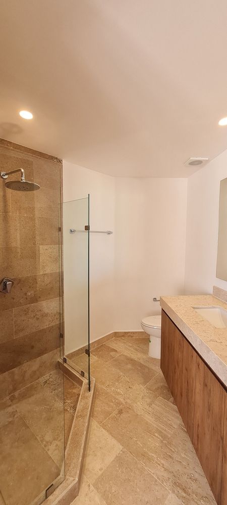 -Cancel fijo de cristal templado en área de regadera