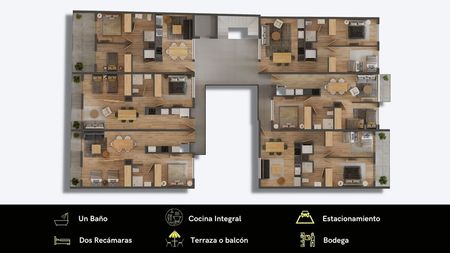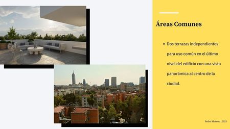Dos terrazas independientes para uso común en el último nivel del edificio con una vista panorámica al centro de la ciudad.