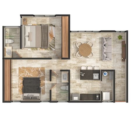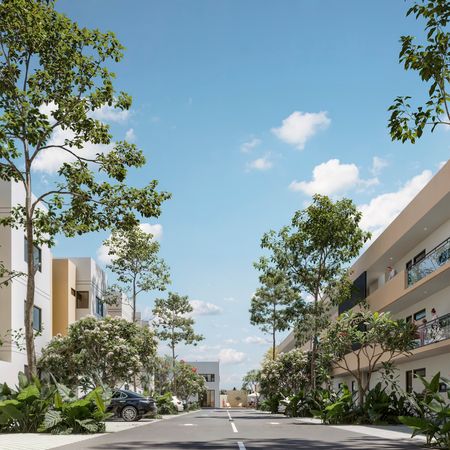 Desarrollo de 132 departamentos distribuidos en 4 modernos edificios de 3 niveles, con amplias áreas verdes y amenidades.