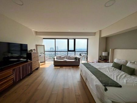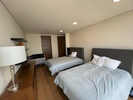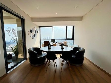 Departamento en la torre Dátil con acabados de madera de ingeniería, mármoles, granitos, vidrios templados, vista a toda la baranda de Bosques, terraza de gran tamaño para poner una sala y comedor de exterior. Techos de doble altura, cocina integral y cuarto de servicio.