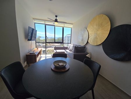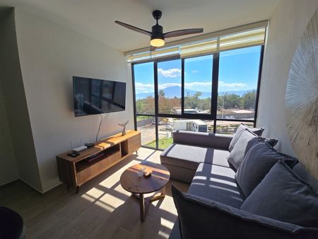 El departamento es prácticamente nuevo, tiene vista al lago, tercer nivel., 2 recámaras, 2 baños completos, sala comedorer , cocina, área de servicio, un estacionamiento.
