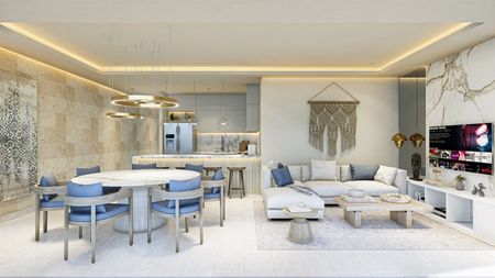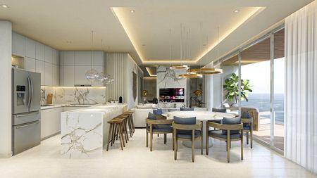 ·Sala, comedor y cocina tipo open plan con vista al mar.
