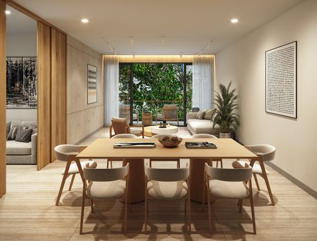 Penthouse: 177 m2 habitables distribuidos en dos niveles más un roof garden privado de 76 m2.