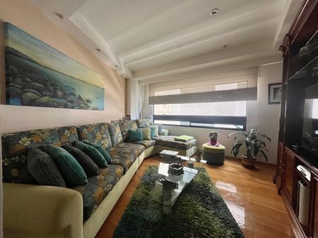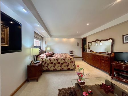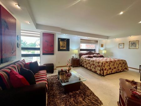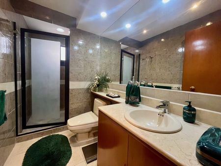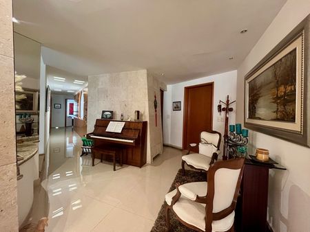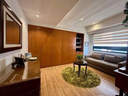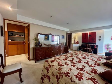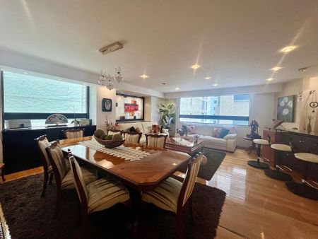 Departamento con 3 recamaras la principal con vestidor, 3 baños, cuarto de T.V., sala, comedor, cocina cerrada, medio baño para visitas, área de lavado, cuarto de servicio con baño, 4 lugares de estacionamiento y 1 bodega.