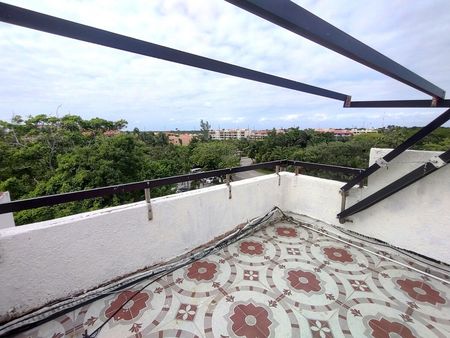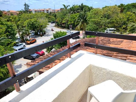 Experience the perfect blend of comfort, privacy, and Caribbean charm in this stunning apartment, located in the prestigious Marina Puerto Aventuras community. Positioned on the top floor of a two-level building, this home offers bright, open spaces and two private terraces, one overlooking the street and roof with ocean view, ideal for relaxing or enjoying the tropical breeze.