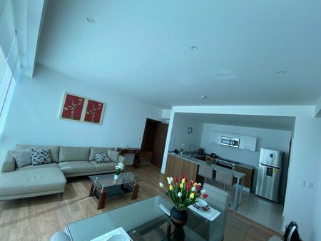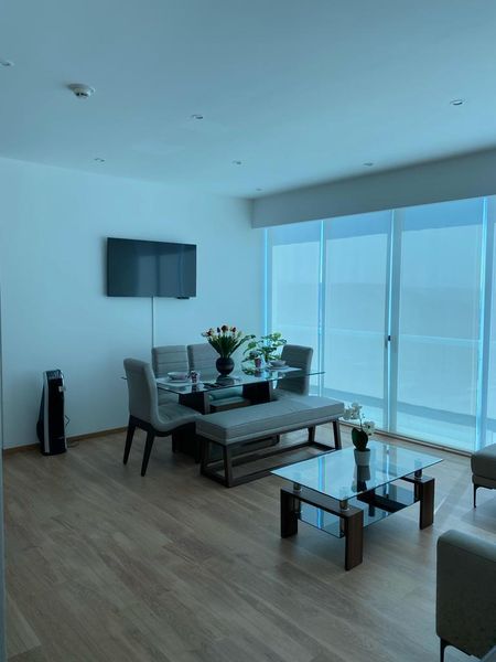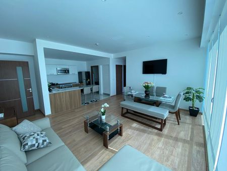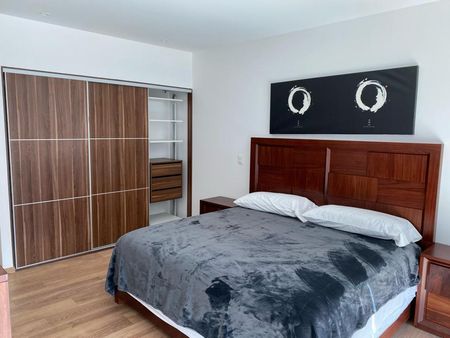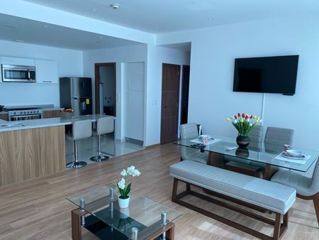 El departamento está meticulosamente amueblado, desde las recámaras hasta la sala comedor, asegurando un ambiente de lujo y confort. Además, cuenta con película anti-rayos UV en todas las ventanas para mantener el espacio fresco y protegido.