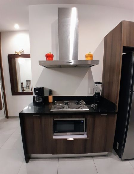 *Cocina: electrodomésticos: cafetera, microondas, parrilla eléctrica y refrigerador de 16 pies.