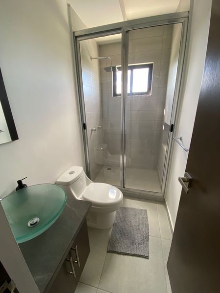 Dos recamaras, dos baños, sala, comedor, cocina, terraza, cuarto de lavado con lava- secadora de 20 kilos.