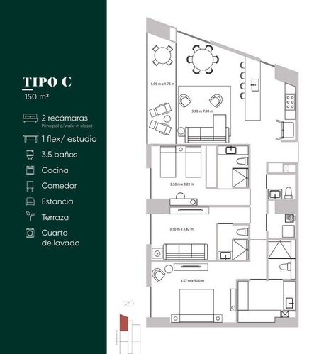 Este departamento ubicado en el nivel 22 es un santuario de vida moderna y sofisticada. Con 150 m2, 2 recámaras y un 3er cuarto flex que podría ser estudio o cuarto de visitas, 3 baños y 2 estacionamientos, redefine el concepto de hogar. Todo el departamento tiene CORTINAS INCLUIDAS.