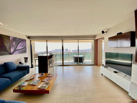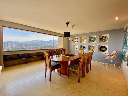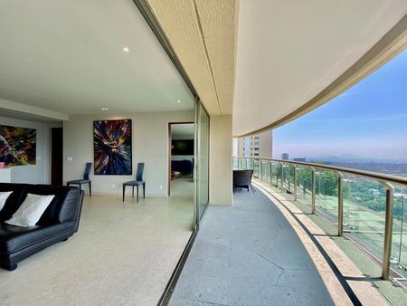 Departamento con Terraza y Vista a la Mexicana y a los Volcanes. Superficie de 370 metros, 3 recamaras, 3 y medio baños, estudio y cuarto de TV, 4 estacionamientos. Cuarto de servicio. Amenidades alberca, gym, salón de eventos, área de juegos para niños, jardín de eventos. Mantenimiento mensual 13,000 pesos.
