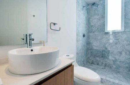 Acabados de alta calidad como: mármol en baños y cocinas, madera de ingeniería y barra de cuarzo.