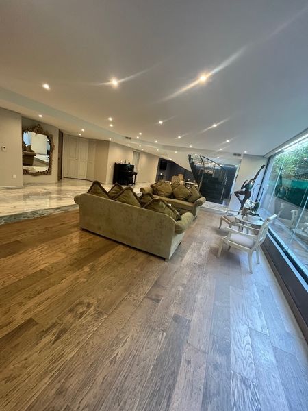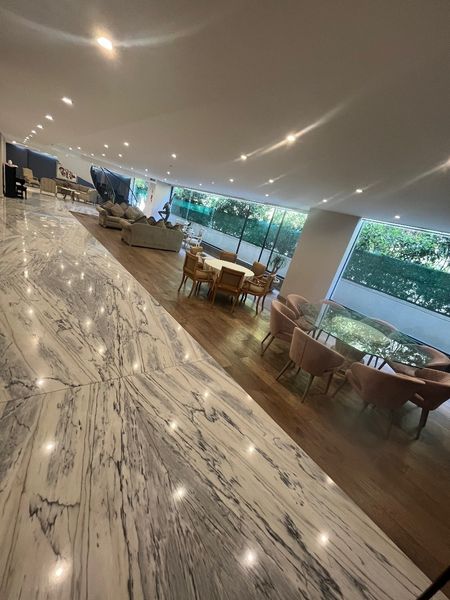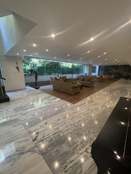 EL DEPARTAMENTO ESTÁ DIVIDIDO EN DOS PLANTAS , LA PLANTA BAJA TIENE UNA ENORME ESTANCIA DE SALA Y COMEDOR CON HERMOSOS ACABADOS ALGUNAS ÁREAS RECIÉN REMODELADAS