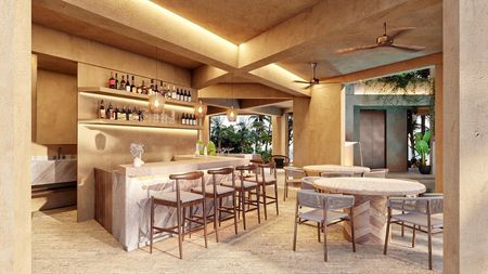 recepción, lounge bar, gimnasio, mirador con vista litoral, área de meditación.