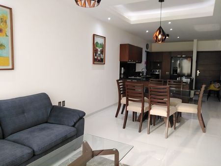 Cuenta con 2 recámaras; principal con vestidor, 2 baños completos equipados con espejos, sala comedor, cocina integral, cuarto de lavado y garage techado para 1 auto