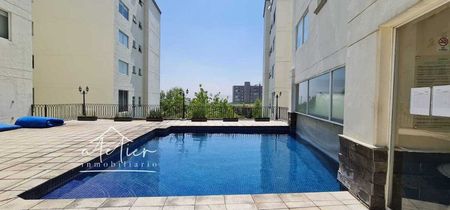 Áreas comunes jardín, palapa con asadores, gimnasio, alberca mitad techada y descubierta, jacuzzi, chapoteadero, salón de eventos, ludoteca, salón de usos múltiples, cancha de raquetbol, salón de adultos, cine, la del edificio es 24 horas, estacionamiento de visitas, fácil acceso para discapacitados.