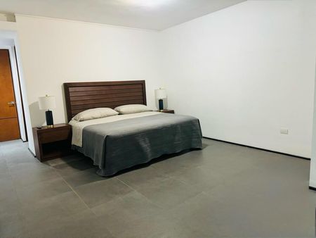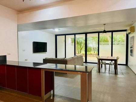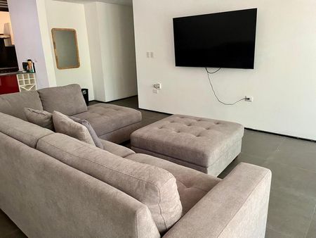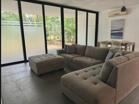 El departamento es amplio y está en planta baja, con conexiones perfectas entre exteriores e interiores. Está amueblado y cuenta con:
