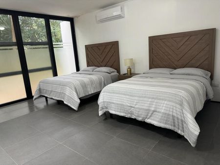 Recámara secundaria con dos camas matrimoniales con baño completo y clóset vestidor