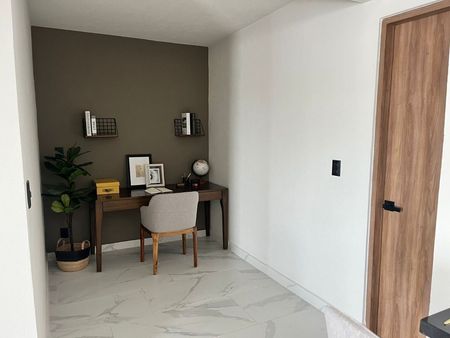Sala, comedor y cocina equipada con barras de granito, dos recamaras con baño, estudio, terraza, patio interior y cuarto de lavado techado, un lugar de estacionamiento. Acabados de lujo, casa club con alberca, ludoteca, gimnasio y áreas verdes. solo 76 propiedades.