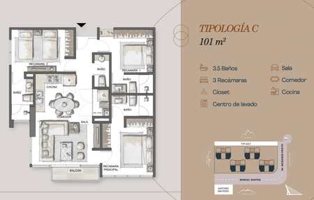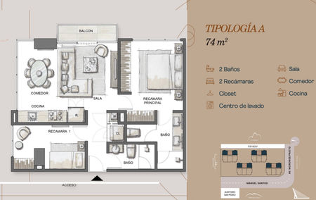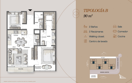 3 Tipologias de 74m2, 90 m2 y 101 m2 de 2 y 3 recamaras.