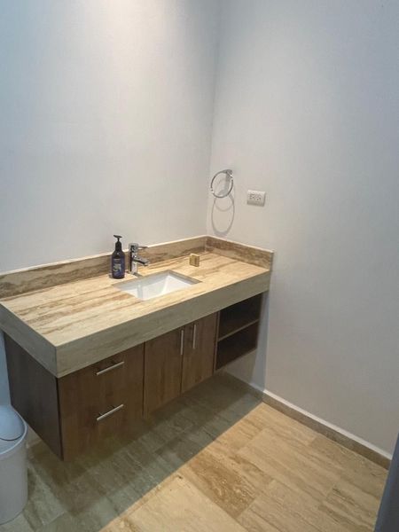calentador, Aires acondicionados en los cuartos y area comun, ventiladores, comedor, sofacama, una tele, cortinas, closets vestidos en ambas habitaciones y muebles de baño