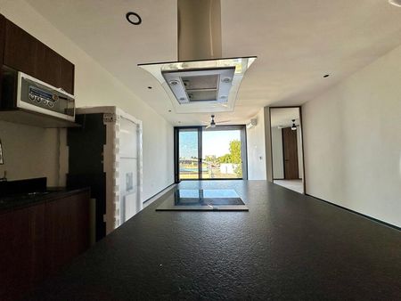 • Cocina vestida con mobiliario de melamina, parrilla eléctrica y mesetas de granito.