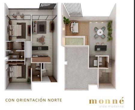 Monne es un desarrollo de 75 departamentos acomodados en 2 torres que convergen en una zona de areas comunes.
