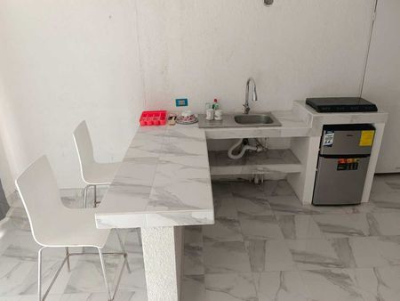 DEPARTAMENTO MUY BIEN UBICADO, SOBRE LA CALLE JALISCO EN LA COLONIA PUEBLO NUEVO, SEMI AMUEBLADO, ENREJADO, CUENTA CON AIRE ACONDICIONADO, TELEVISIÓN, COCINETA CON TARJA, ESTUFA Y FRIGOBAR, CAMA MATRIMONIAL IDEAL PARA UNA PERSONA O UNA PAREJA.