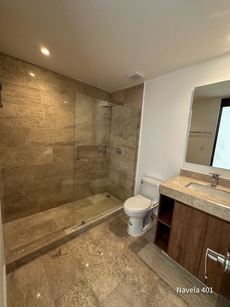 Habitación principal con closet vestidor y baño completo con salida exclusiva a la terraza.