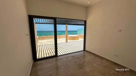 Navela 401 es un penthouse que se destaca por tener vista frontal a la hermosa costa esmeralda del mar de Telchac, con dos espectaculares terrazas, un balcón y para rematar: un jacuzzi en la terraza más alta, frente al mar, sencillamente inigualable.