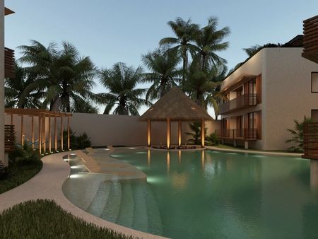 Aruma Beach Condo es un complejo ubicado en san Benito, a menos de 150 metros de la playa, inspirada en eso significado “Maya de noche”, Aruma se ha creado para ofrecer un ambiente de descanso y tranquilidad. Con una variedad de opciones disponibles, existen diferentes tipos de departamentos, con o sin Rooftop , y disfrutar de las comodidades que ofrecen. Cuentan con casas en terrenos de 500 m2, equipadas con todas las comodidades