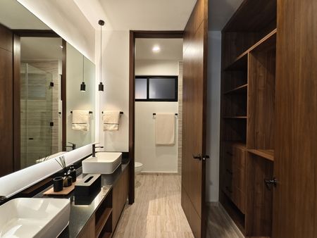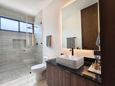 -Recamara principal con clóset vestidor semivestido y Bano completo con gabinete inferior, espejo y vidrio templado con puerta