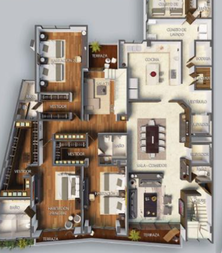 • Cada departamento se entrega en obra blanca para que el propietario lo termine a su propio gusto.