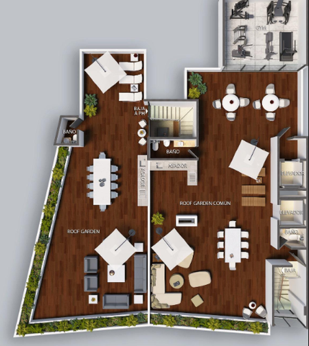 Pent-house de 420 m2 construidos, incluidos 100 m. de roof Garden privado, al cual se Accede directamente desde el interior del PH único.