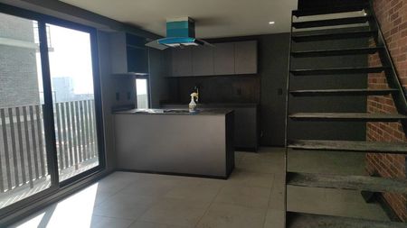 El departamento Sin muebles, cuenta con 1 recamara con Closet, 1 baño, Cocina Integral con Cubierta de Granito, Sala y Elevador en el Edificio.