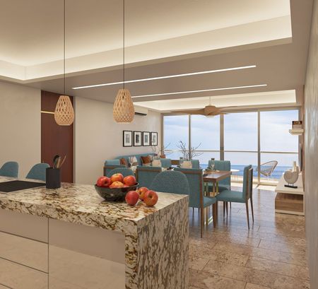 Diseño moderno, amenidades, frente al mar, servicios a pie, acabados de lujo y privacidad.