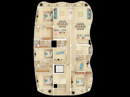 Torre departamental de lujo de 12 niveles con 13 departamentos y 2 penthouses.