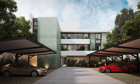 3 niveles; 5 departamentos por nivel con cajones de estacionamiento techado.