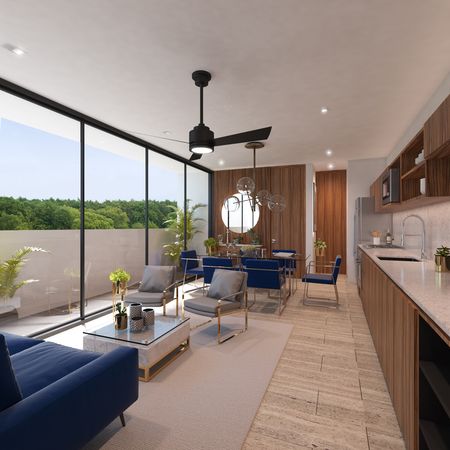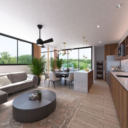 Exclusivo complejo departamental dentro del periférico de cinco niveles, ubicado en la mejor zona de la ciudad: la zona norte de Mérida, a unas calles de Prolongación Paseo de Montejo.