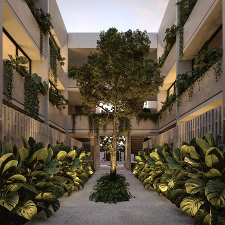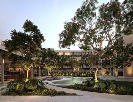 Arquitectura de paisaje con árboles de la región que te invitan a la serenidad y la calma.