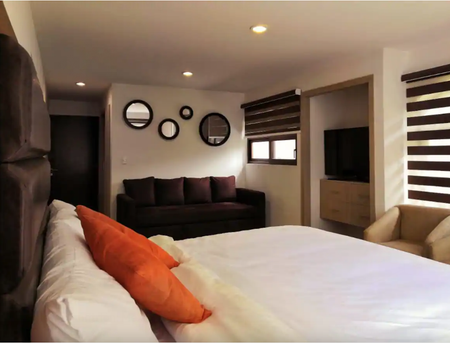 -1 recamara con cama King Size y sofá cama, vestidor, baño completo, closet, Pantalla Plana con servicio de megacable