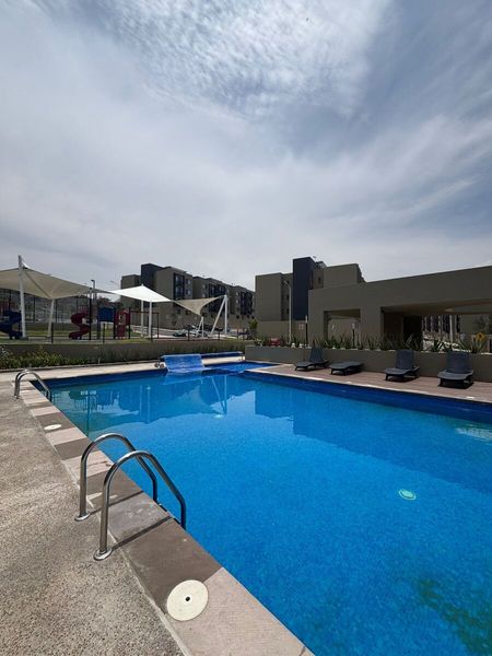 Estrena Depto en renta de 2 recámaras, 2 baños, cocina equipada, con barra de cuarzo, sistema inteligente para controlar luz y sonido, amenidades como alberca climatizada, canchas de pádel, canchas de usos múltiples, salón de usos múltiples, gimnasio, terraza y asadores, juegos infantiles, ludoteca , área de yoga y seguridad a las 24 horas