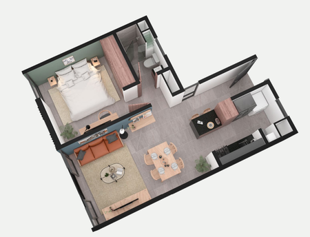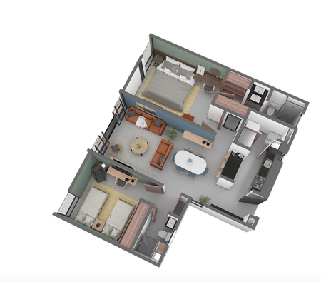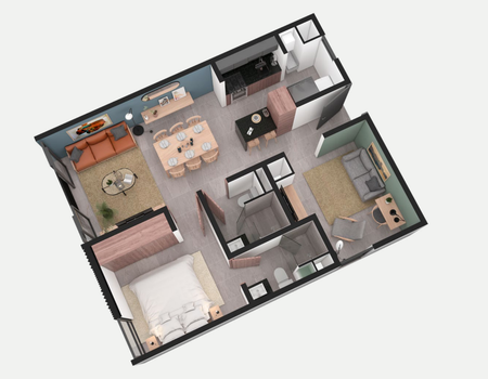 Departamento de 2 a 3 recamaras, sala-comedor, cocina equipada, barra desayunador, 2 a 3 baños, 1 a 2 autos.