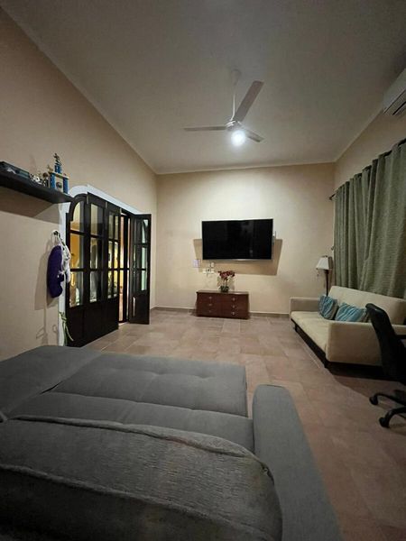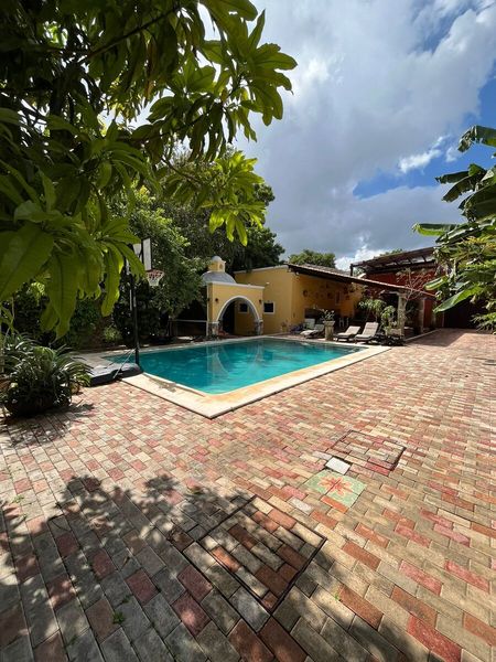 Toda la casa está en planta baja, cuenta con 5 recámaras (una de ellas en un apartamento independiente, como para visitas); cuarto de televisión con sofá cama; sala; comedor; amplia terraza social; terrazas-pasillos tipo hacienda; área para hacer fogata; jacuzzi; piscina (con baño de hombres y de mujeres, así como regaderas para piscina). Garage para muchísimos vehículos!