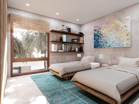 EL NIDO un proyecto residencial que busca dar al ser humano la sensación de estar dentro de la selva de Tulum. Es por esto a través de las vistas dirigidas a las áreas verdes buscamos sumergir a las personas en una sensación única.