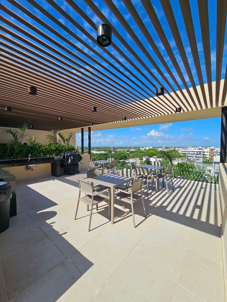 Dentro del edificio encontrarás amenidades de lujo: rooftop con piscina y canal de nado, jacuzzi, gimnasio, sala de yoga, área de parrilla, co-working, y espacios comunes con WiFi para disfrutar todo el año.
