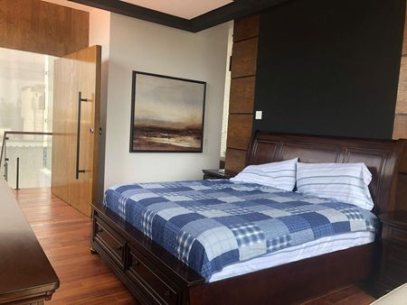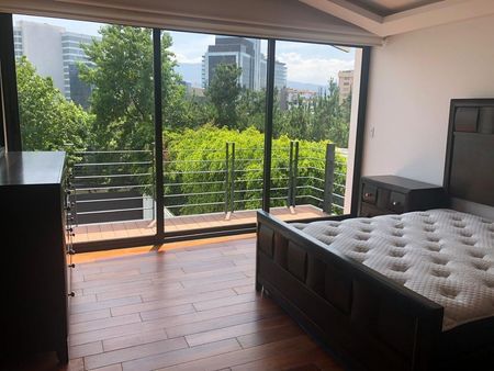 En el tercer nivel se encuentra la master suite, que cuenta con una vista espectacular, baño completo con jacuzzi que cuenta con vista al cerro de Zacatepetl y bosque de Tlalpan, Vestidor, persianas eléctricas .