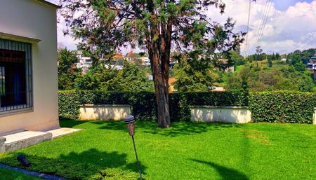 Preciosa casa con techos altos en calle privada con seguridad. La casa se desarrollo en un solo nivel. Amplios espacios interiores. Vista panoramica con horizonte amplio hacia Bosques.