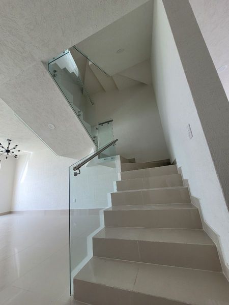 De lado izquierdo de las escaleras se encuentra la recamara principal con amplio vestidor, la regadera y el WC y el doble lavabo de esta habitacion se encuentran completamente separados.